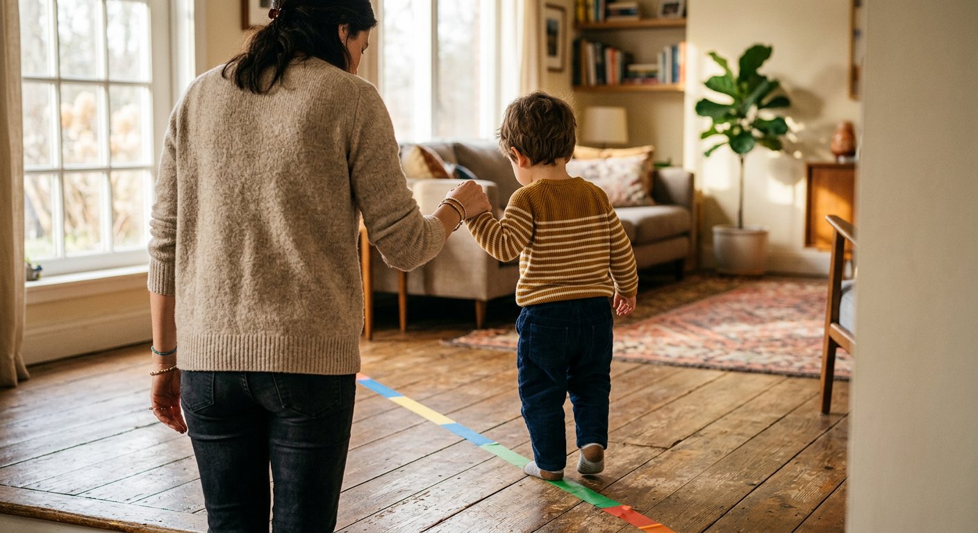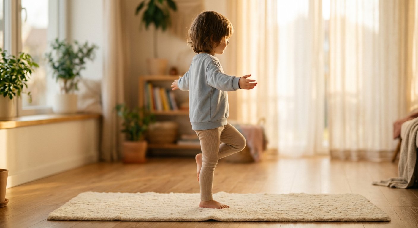 Занимайтесь вместе. Тренировки лучше проводить вместе с ребёнком. Это и безопасность (вы рядом, если что-то пойдёт не так), и мотивация (вместе веселее). Превращайте каждое упражнение в игру — классики, «канатоходец», «кто дольше простоит» — и ребёнок будет просить повторить.