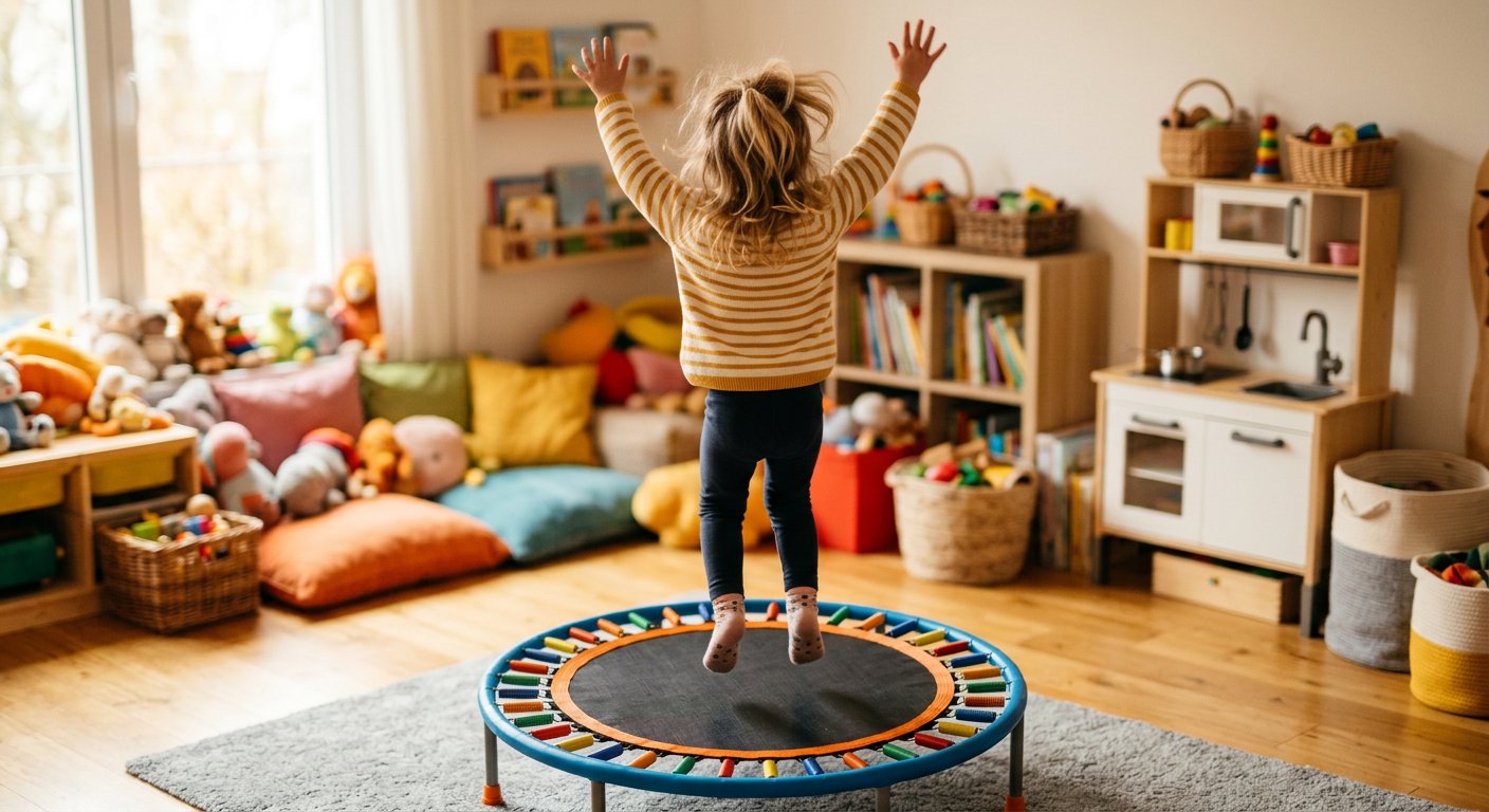 Прыжки мягко стимулируют вестибулярный аппарат за счёт постоянной смены положения тела вверх-вниз.